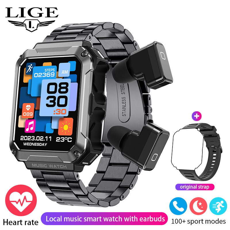 LIGE Smartwatch with Earbuds Bluetooth calling Blood Sugar TWS 4GB Multifunctional Waterproof Music Player